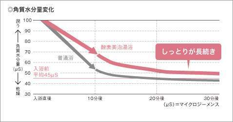 またモイスチャー効果でお肌のしっとり感が長続きするのも特徴です。湯あがり後の角質水分量の変化を調べると、酸素美泡入浴をすると潤いが持続していることが分析結果で出ています。また湯上がり後に体温が下がるのを防いでくれる効果があることも分かっています。39度のぬるめのお湯でも入浴後に対応が下がりにくく、通常の入浴に比べて、0.5度は体温をキープできます。ぬるめのお湯だと副交感神経が刺激されて、リラックス効果が期待できますので、毎日心地よく入浴できるうえに、体温をキープできるのは魅力的です。